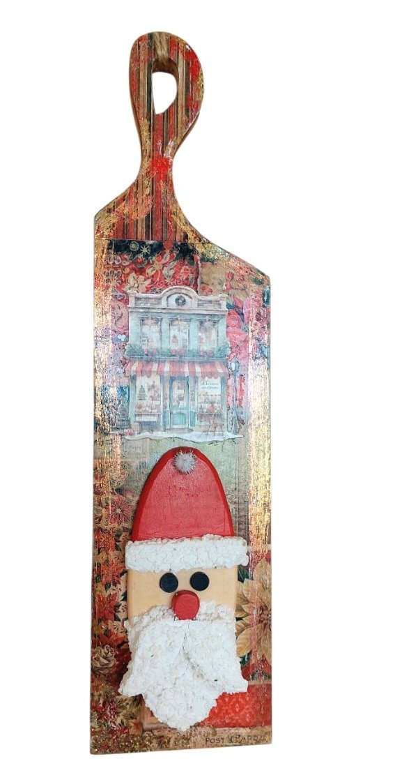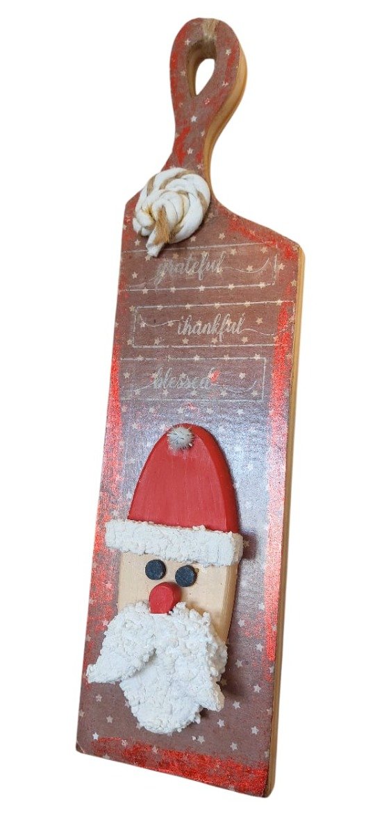 Novedosos carteles en madera para colocar en la puerta o donde mas te guste , decorado enteramente a mano . Es de madera de pino de 42x10x2 cm . Con apliques de Papa Noel en madera tambien el mismo es de 15x7x0.5 cm El valor es por cada cartel
