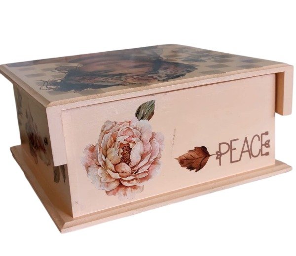 La Caja de Té artesanal de La Reunion, modelo Bohemia, es una pieza única que combina funcionalidad y estética. Con un diseño cuadrado, sus dimensiones de 20 cm de ancho, 7 cm de profundidad y 9 cm de altura la convierten en un complemento ideal para cualquier espacio. Su estructura y tapa, elaboradas en MDF, garantizan durabilidad y un acabado elegante.